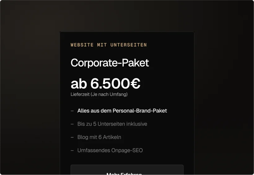 Nach Zahlungseingang starten wir mit dem 2-Stunden-Workshop. Positionierung, Seitenstruktur, Blog-Themen, Bildsprache — das Fundament für alles.